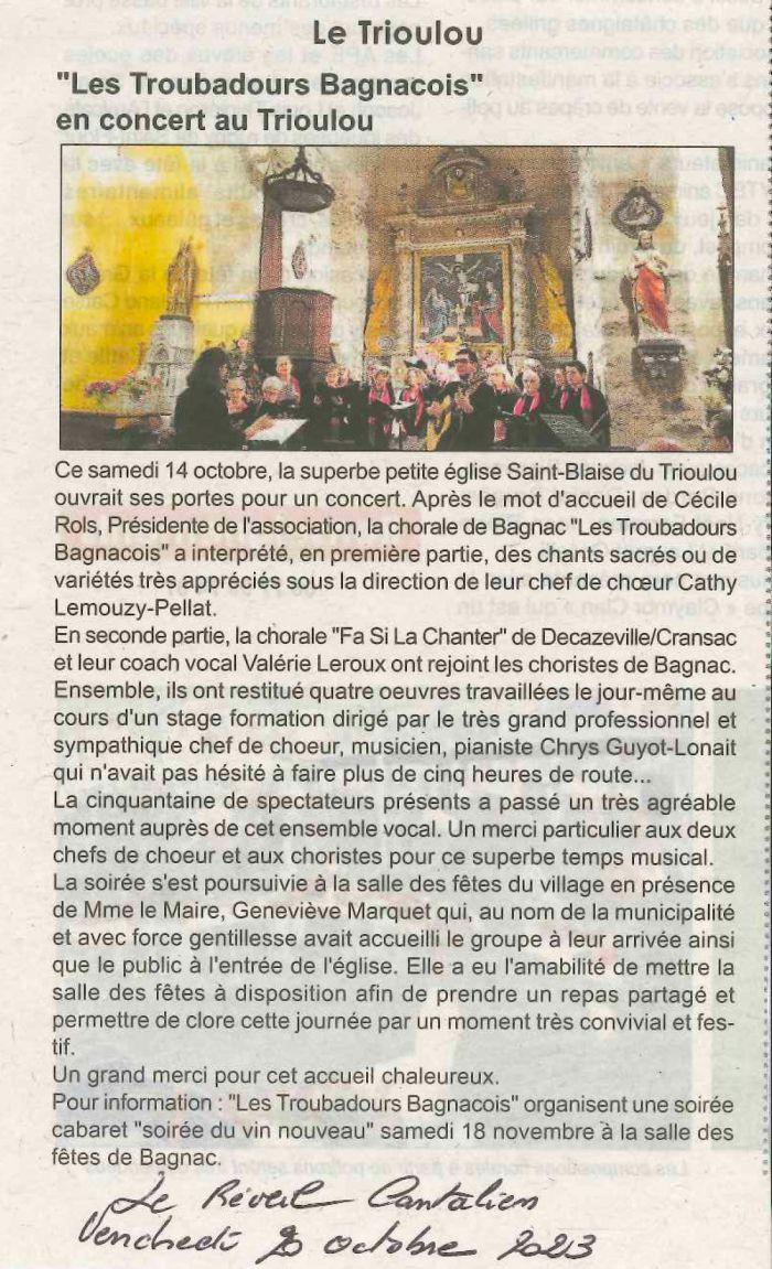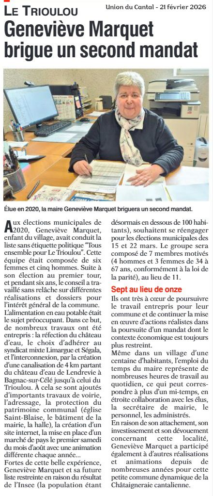 Retrouvez ici les derniers articles parus dans la presse locale sur notre petite commune du Trioulou.